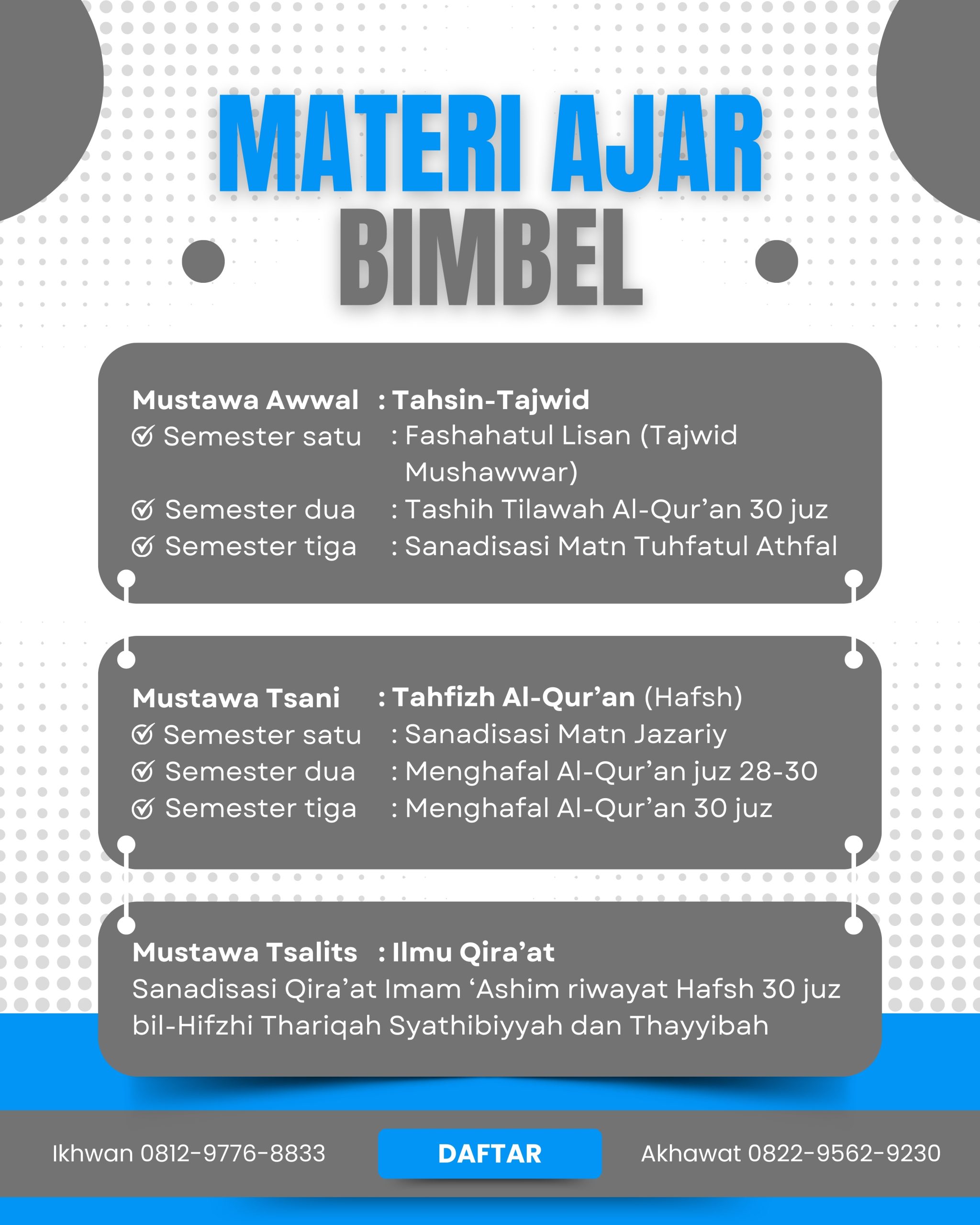 Dikarenakan bimbel ini sangat intensif, selain yatim/ah & armalah maka bimbel ini berbayar :